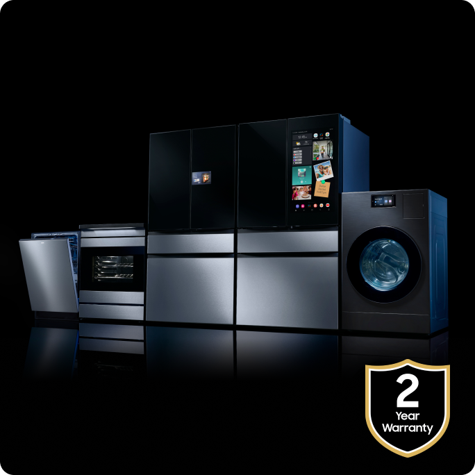 ≡Between February 6, 2025 – December 31, 2025 (“Promotional Period”), at participating retailers only, purchase an eligible Samsung appliance (“Qualifying Purchase”), submit a valid offer claim form at samsung.com/us/shop/promotions/warranty-offer-2025 and receive a one year warranty extension from the original one year manufactures warranty. Must complete and submit a Reward Redemption Form claim form and documentation online within 90 days of promotion end date for validation; once validated, one year warranty extension will be applied. See Eligible Categories and products, and additional offer Terms and Conditions at samsung.com/us/shop/promotions/warranty-offer-2025. Eligible Categories are: Refrigerators, Ranges, Dishwashers, Wall Ovens, Cooktops, Range Hoods, Over-the-Range Microwaves, Washers, Dryers. All other categories are ineligible.