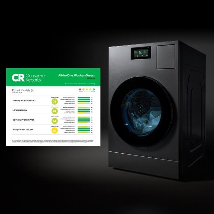 θSamsung WD53DBA900 AI Laundry Combo™ machine. Consumer Reports does not endorse products or services. Model WD53BA900. Consumer Reports does not endorse products or services.