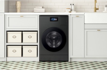 7AI Home LCD touchscreen on Laundry Combo accesses AI OptiWash+ sensing and Bixby based on AI-based algorithms. Wi-Fi connection and Samsung account required. AI OptiWash+ fabric sensing for 8 lb. loads and under; to prevent wear, wash like fabrics together, results may vary. Bixby utilizes deep learning models.
