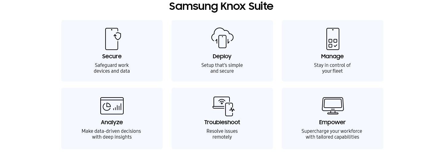 With a single bundle that simplifies complex admin tasks, Knox Sure ensures everyone can get on with their work securely and efficiently