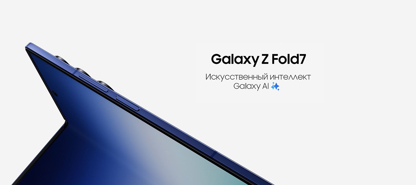 Новый самый тонкий складной смартфон Samsung Galaxy Z Fold7. Сбоку подсвечиваются тонкие грани, а затем телефон поворачивается под углом и раскладывается, чтобы показать большой основной экран. Galaxy AI Новый самый тонкий складной смартфон Samsung Galaxy Z Fold7. Сбоку подсвечиваются тонкие грани, а затем телефон поворачивается под углом и раскладывается, чтобы показать большой основной экран. Galaxy AI