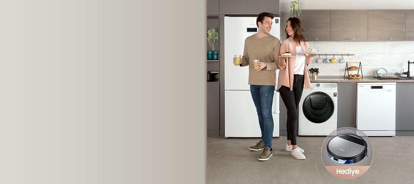 Kampanya, Samsung tarafından ithal edilen ve kampanyaya katılan tüm Samsung yetkili satış noktalarından ve shop.samsung.com/tr web sitesi üzerinden 01.05.2021 - 31.07.2021 tarihleri arasında satın alınmış kampanyaya dahil olan stoğu bulunan Samsung marka seçili buzdolapları, çamaşır makineleri, kurutma makineleri, bulaşık makineleri (‘Ürün/ler’) için geçerli olup; bu ürünlerin herhangi üçünü (buzdolabı,çamaşır makinesi,kurutma makinesi, bulaşık makinesi olacak şekilde farklı dört ürün grubundan) birlikte satın alan tüketicilere (“Katılımcı”), kampanya koşullarını yerine getirmeleri durumunda Samsung VR05R5050WG/TR Robot Süpürge hediye edilecektir. Şüpheye mahal vermemek üzere, kampanyaya başvurabilmek ve kampanya kapsamında sağlanan hediye fırsatından faydalanabilmek için kampanyaya dahil dört ürün grubu olan çamaşır makinesi, bulaşık makinesi, kurutma makinesi, buzdolabından herhangi farklı üç tanesinin birlikte satın alınması gerekmektedir. Örneğin, üç adet kampanyaya katılan buzdolabı ürünü ya da üç adet kampanyaya katılan çamaşır makinesi ürünü alan tüketiciler işbu kampanyadan faydalanamaz.