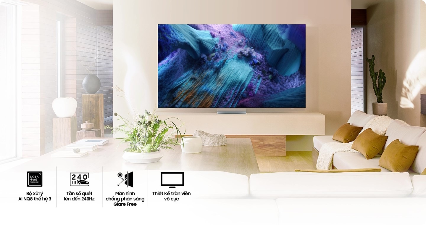 - * TV số 1 thế giới: Nguồn –Omdia, tháng 2 năm 2025. Kết quả không phải là sự chứng thực của Samsung. Bất kỳ sự phụ thuộc nào vào các kết quả này đều do bên thứ ba tự chịu rủi ro.