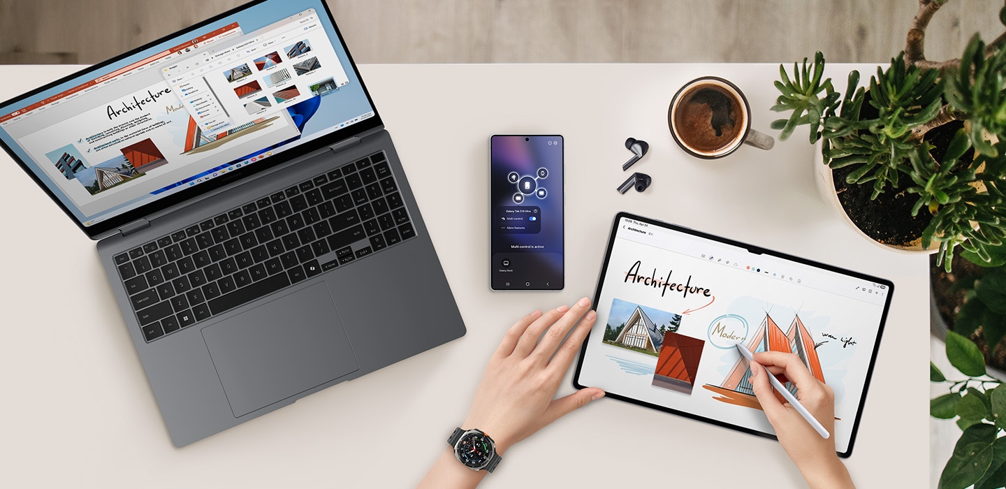 Les appareils connectés Galaxy s'associent parfaitement et offrent de nouvelles possibilités de communication, de travail, de loisirs et de bien être. 13