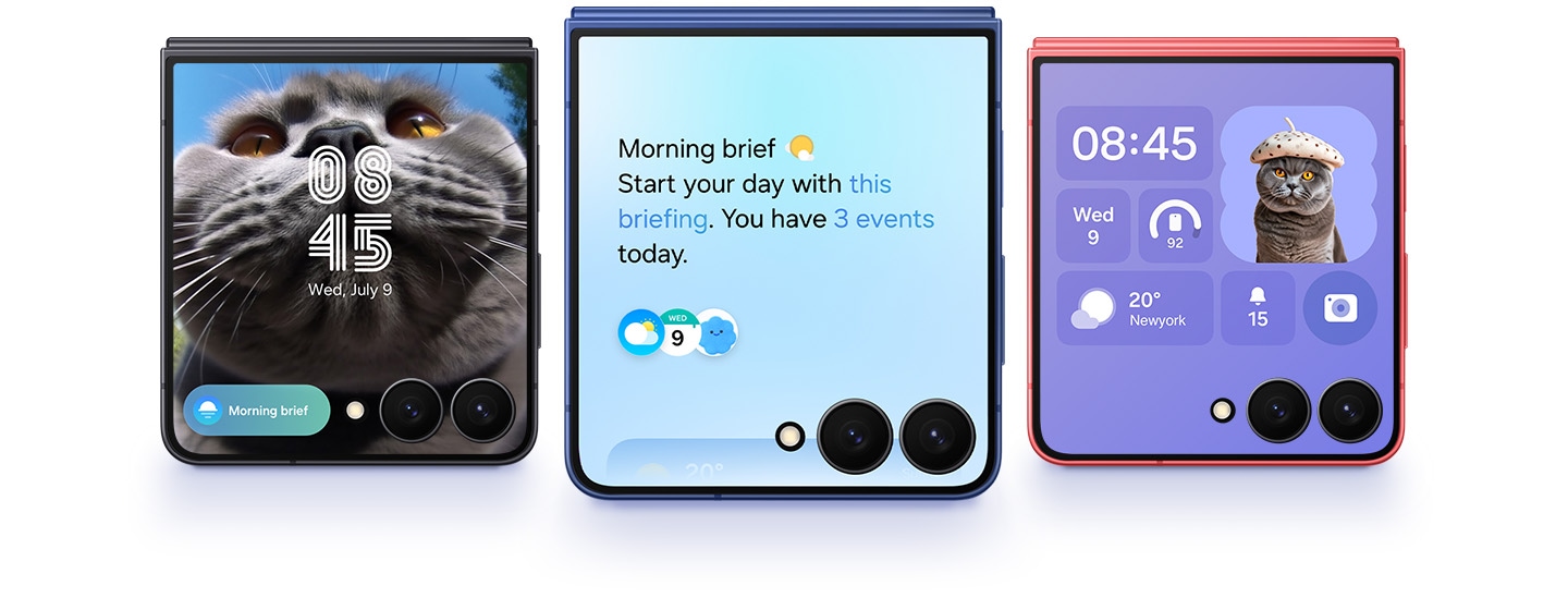 Explorez davantage avec l’écran externe de votre Galaxy Z Flip7, désormais doté d’une nouvelle interface intuitive pour vous aider au fil de votre journée.6