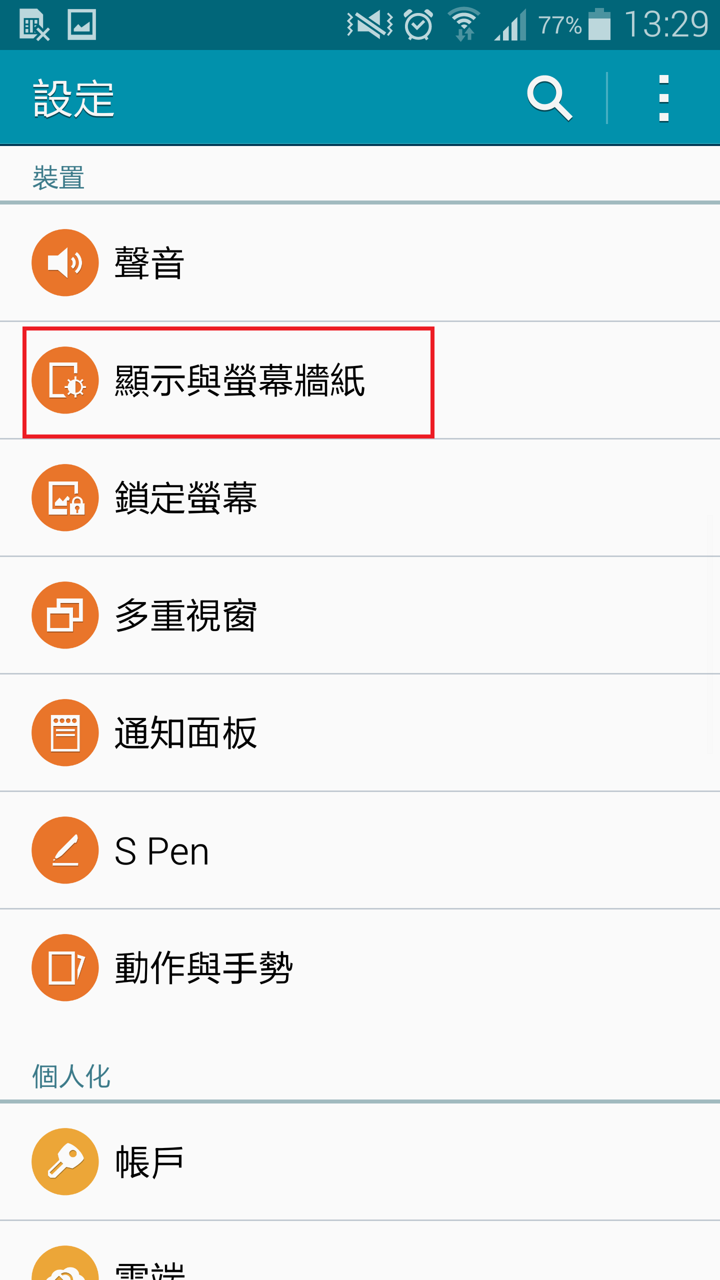 點選裝置>顯示與螢幕牆紙