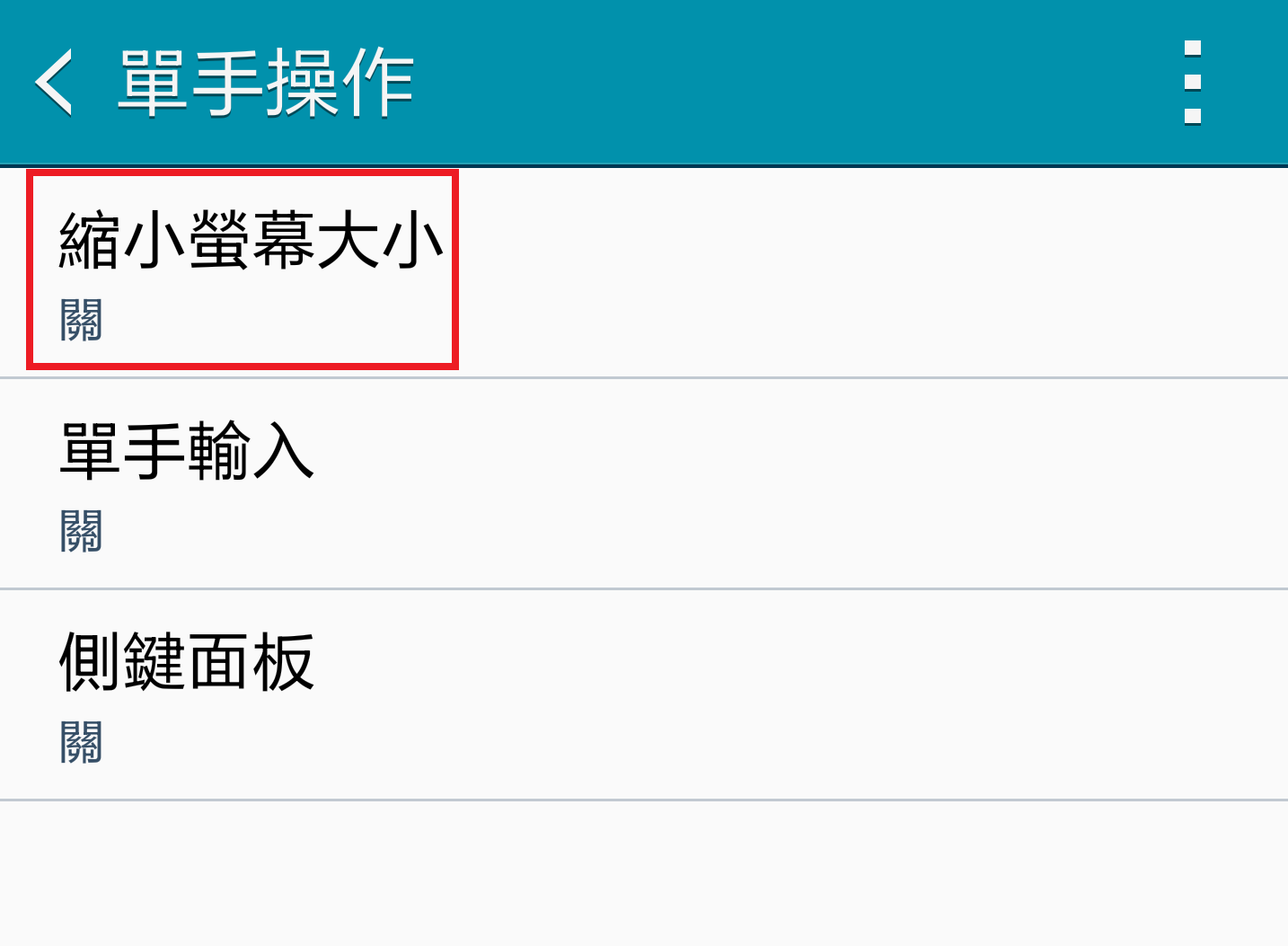 向右拉動滑動列開啟縮小螢幕大小功能