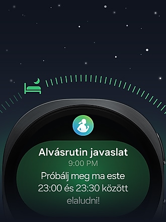 - 4. Az alvásrutin javaslat funkció Android rendszerű (Android 11-es vagy újabb verzió) telefonokon érhető el, és (6.30.2-es vagy újabb verziójú) Samsung Health alkalmazás használatát igényli. Az általános edzettség és erőnlét mérésre szolgál. A mérési eredmények csak személyes használatra szolgálnak. Nem alkalmasak semmilyen egészségügyi állapot vagy alvászavar felderítésére, diagnosztizálására és kezelésére. Tanácsért keresd fel a kezelőorvosodat!
