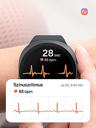 - 30. Az EKG alkalmazás elérhetősége országonként/régiónként eltérő lehet. A Szoftver orvosi eszközként (Software as a medical device (SaMD)) jóváhagyására/regisztrációjára vonatkozó országbeli korlátozások miatt az EKG alkalmazás csak azokban az országokban vásárolt órákon és okostelefonokon működik, ahol a szolgáltatás elérhető (a szolgáltatás azonban korlátozott lehet, ha a felhasználók a szolgáltatással nem rendelkező országokba utaznak). További információkért és a szolgáltatás országaira vonatkozó legújabb frissítésekért keresd fel a https://www.samsung.com/hu/apps/samsung-health-monitor/ weboldalt. 22 éven aluliak számára nem ajánlott. A felhasználóknak tilos a készülék kimeneti adatait értelmezni, illetve az alapján klinikai beavatkozást végezni képzett egészségügyi szakemberrel való konzultáció nélkül.