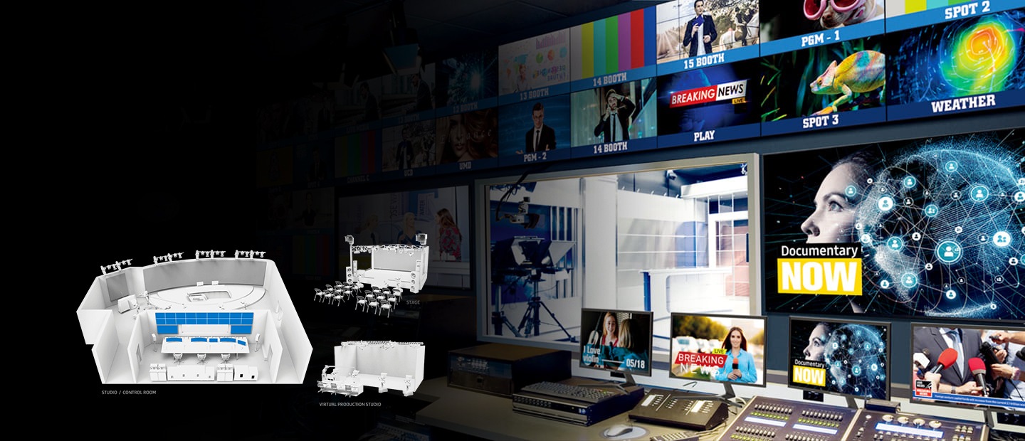 يشهد مجال البث تطوراً سريعاً، ويقع الاستوديو في صميم هذا التحول. حيث توفر الشاشات المرئية لفرق الاستوديو صورة فائقة الجودة وتصميماً متعدد الاستخدامات وموثوقية– ما يؤدي إلى الارتقاء بأي استوديو إلى مستوى جديد.