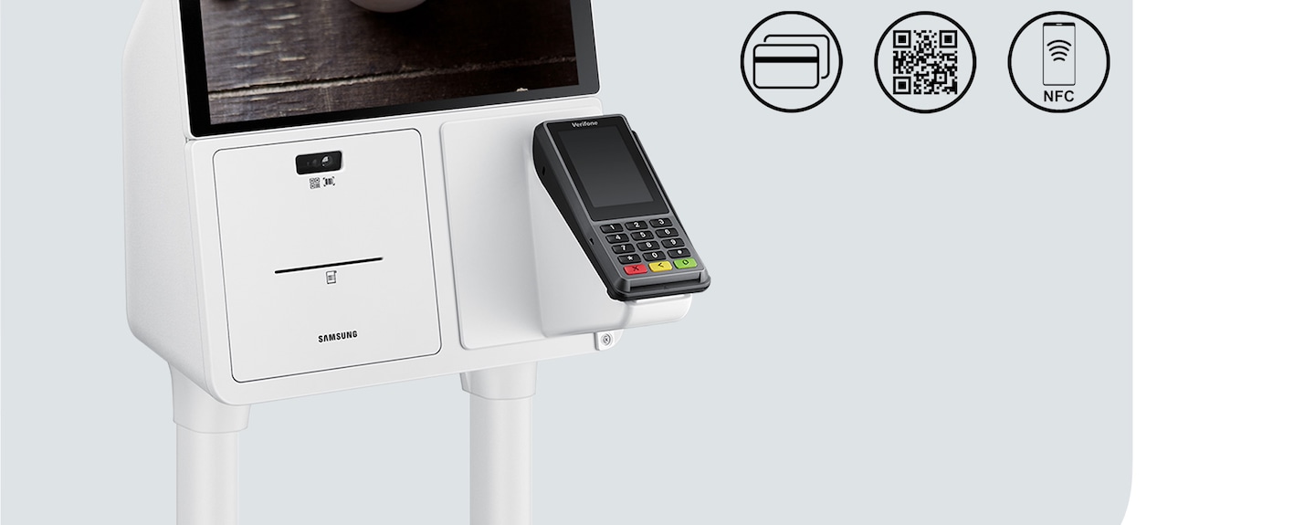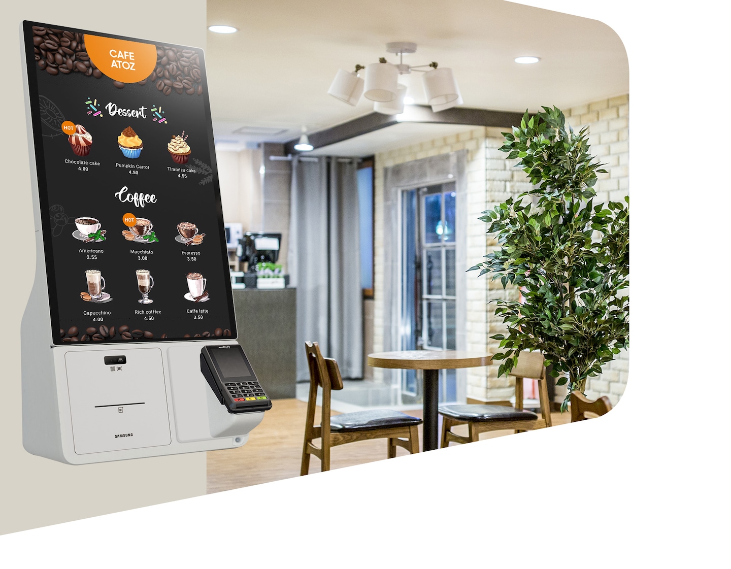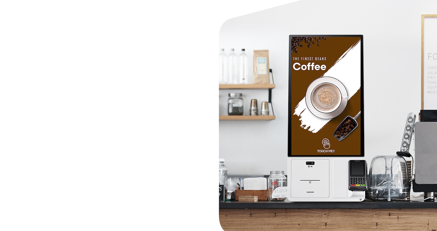 أضف لمسة أناقة إلى البيئات الحالية بصرف النظر عن الخلفية. يمتاز جهاز Samsung Kiosk بحجمه الصغير الرائع سواء كان بمفرده، أو مع درجات اللون الرمادي والأبيض المحايدة التي تمتزج بشكل طبيعي في أي متجر.