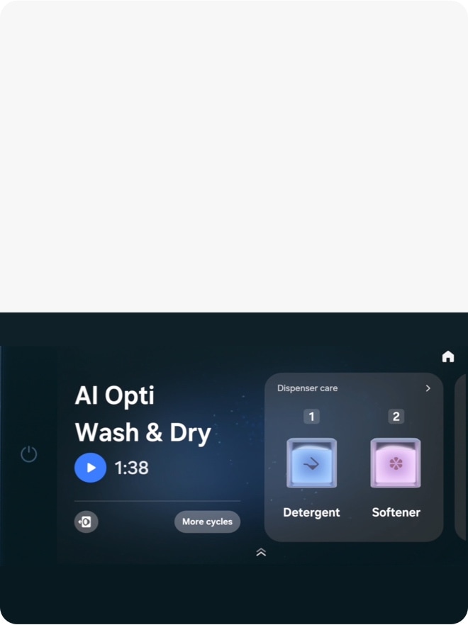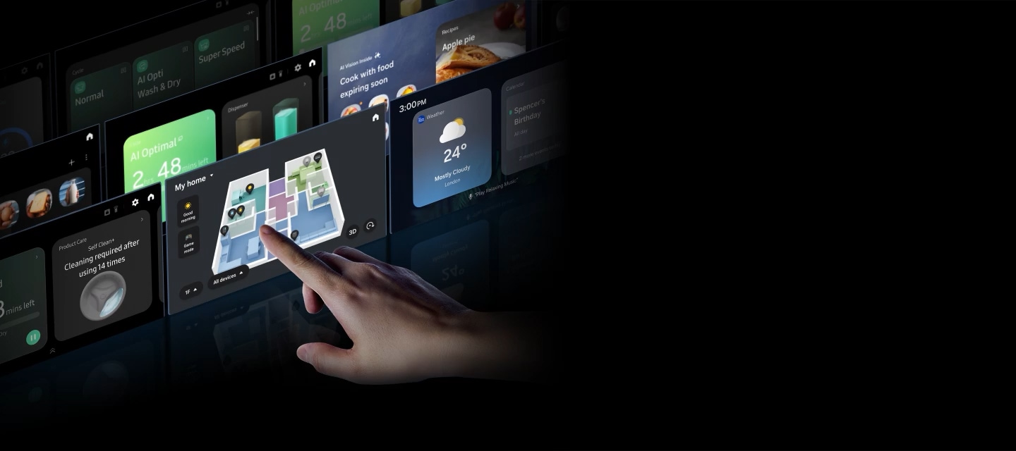 ¹Samsung AI Home LCD touchscreen utilizes AI algorithms and deep learning models. AI features vary by appliance model.