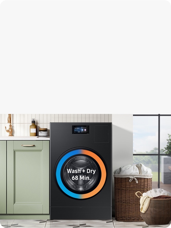 Wash + dry in one uninterrupted 68-minute cycle with the Vented All-in-One.Ψ