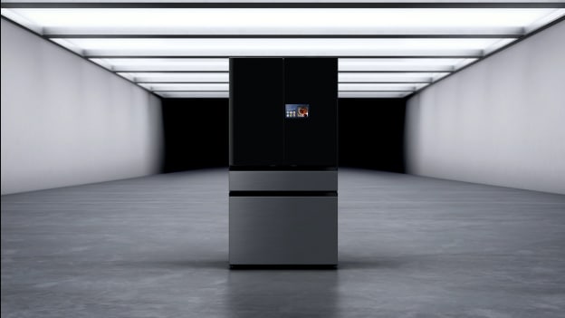 §AI Home LCD Display on RF90F29/23BECRAA Refrigerators accesses AI Vision Inside™, Bixby and personalized recipe recommendations based on AI algorithms. Wi-Fi connection and Samsung account required.