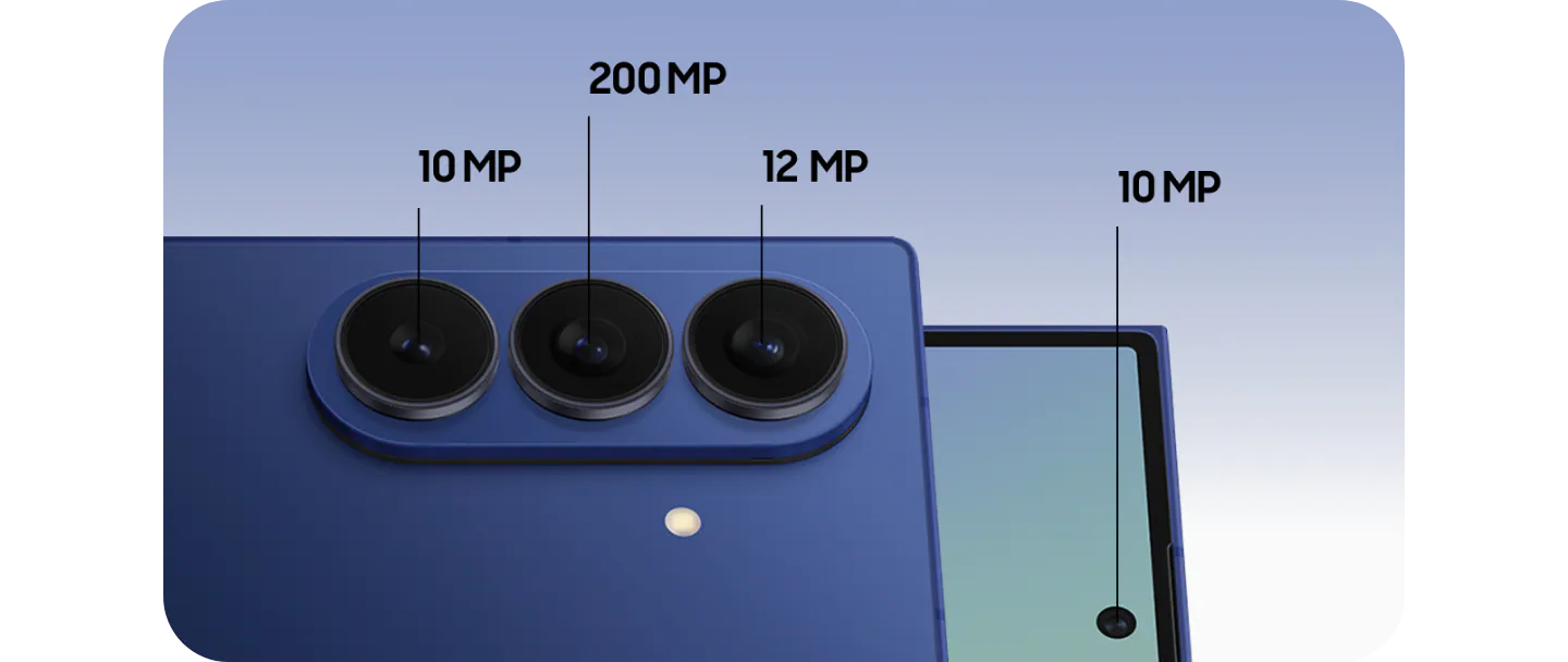 The Galaxy Z Fold7’s main camera is an incredible four times sharper than its predecessor – from 50 MP to 200 MP, also with an upgraded 10 MP front camera, a huge increase from 4 MP.