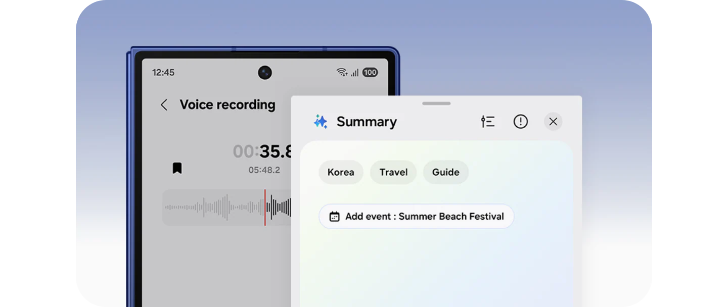 Using Galaxy AI1 to multitask is a breeze with the Galaxy Z Fold7’s bigger screen, optimised with One UI 8.0. Plus, the upsized cover screen lets you easily browse Galaxy AI’s Now Brief1 and Now Bar1 to keep on top of your schedule, without having to open your phone.
