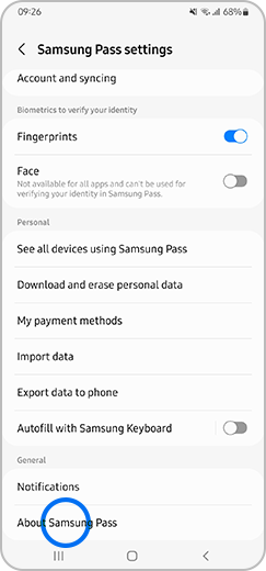 In the Samsung Pass app, you can check, update or delete your data stored in Samsung Pass.