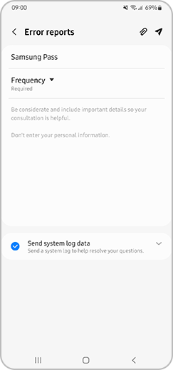 If an error occurs while using Samsung Pass, contact us by following the steps below: