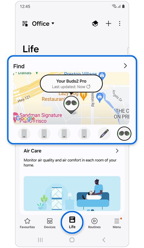 Step 1. Open the SmartThings app > Select the Life tab > Tap the Find card.
