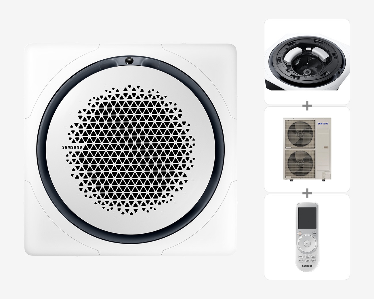 360 Cassette AC with Digital Inverter and Bladeless design, 36000 BTU, White Square Panel