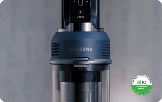 - Fine dust emission level tested when emptying the dustbin. Based on PM10 concentration (µg/m3), maximum level compared with the Samsung VC7000. Results may vary depending on individual use.
