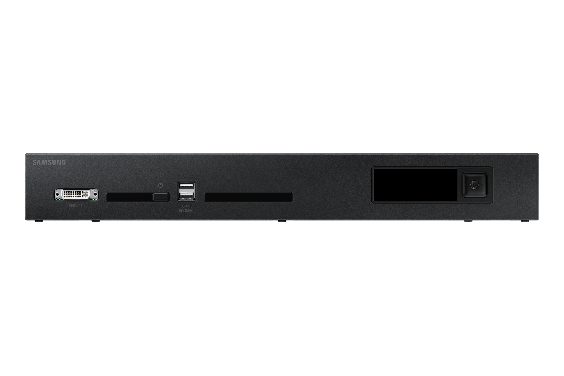 يعمل جهاز الإرسال Signage Box (S-Box) لشاشات LED لفئة SNOW-AAE من Samsung على نقل المحتوى إلى جهاز واحد. ينقل جهاز S-Box المحتوى عبر شاشات LED متعددة ويتيح الإعدادات الأولية والمراقبة الفورية للأجهزة من خلال لوحة LCD الأمامية، مما يوفّر عملية تشغيل أكثر كفاءة.
