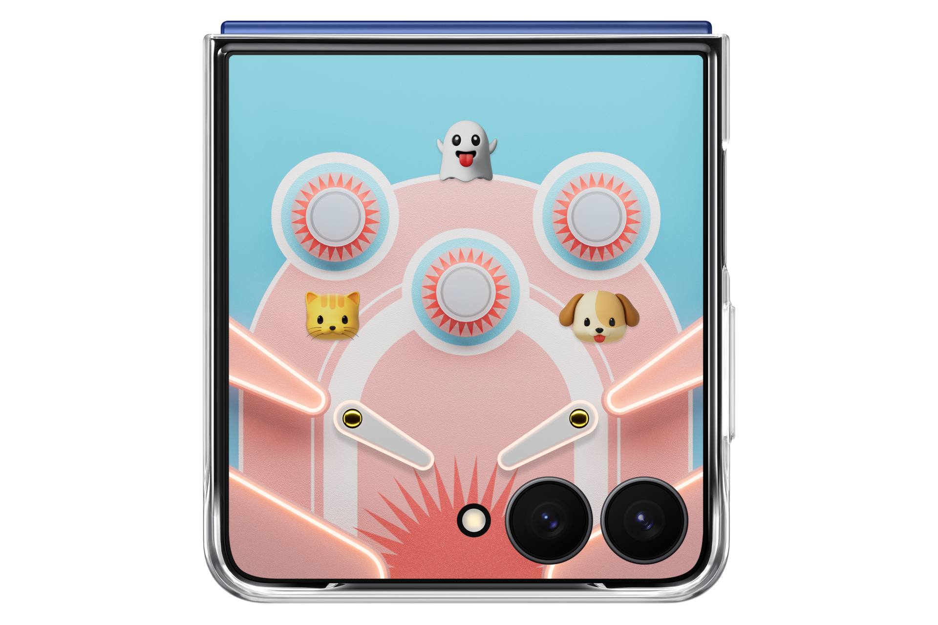 يمكنك الاستمتاع بشاشة FlexWindow المخصصة بطريقتين مع حافظة Flipsuit case. انتقل إلى [الإعدادات]، ثم [شاشة الغطاء]، ثم محتويات Flipsuit. اختر إما إطار صورة بينبول أو Flipsuit. انتقل إلى [حافظة Flipsuit case]، واختر إطار الصورة أو [Gallery]، ثم حدد صورتك. يمكنك أيضاً إعداده من شاشة FlexWindow. اضغط مطولاً على شاشة FlexWindow لديك بينما الهاتف مطوي. عندما ترى خلفية عرض Flipsuit الدوّار، افتح الهاتف. انتقل إلى [حافظة Flipsuit case]، ثم اختر إطار الصورة أو [Gallery]، ثم حدد صورتك.
