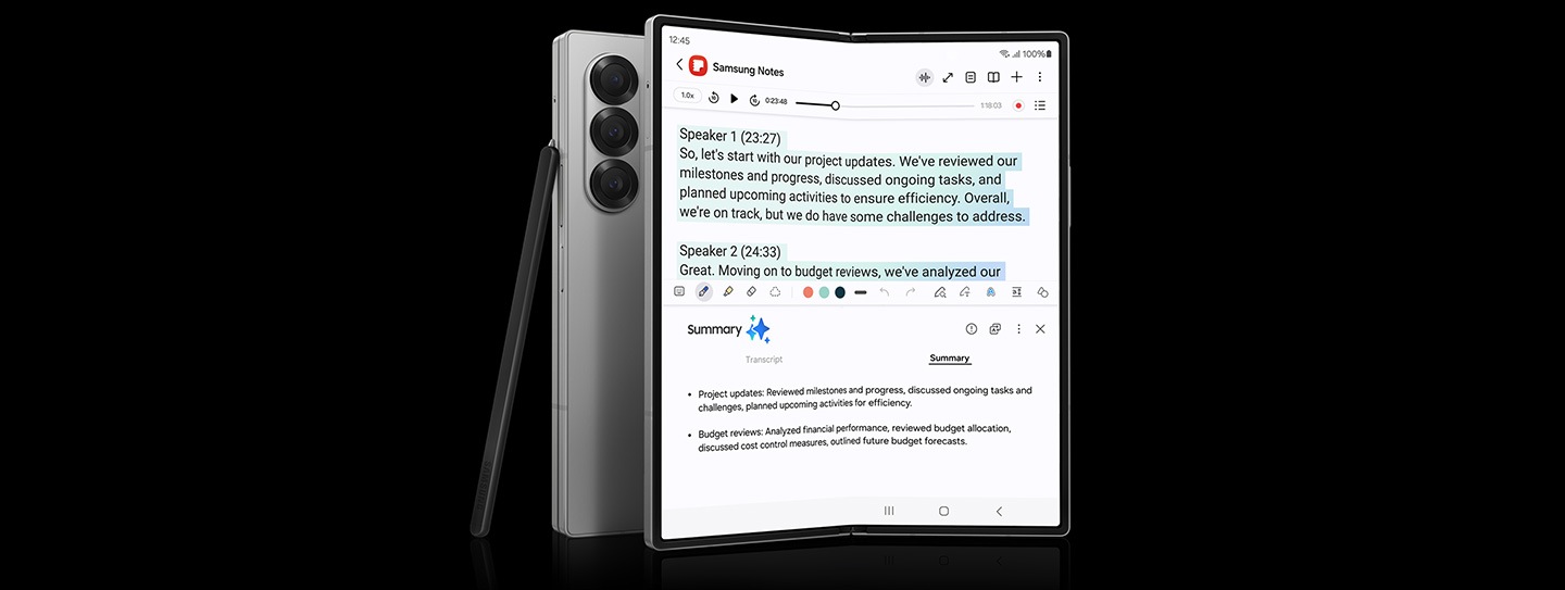 Galaxy Z Fold6, the best AI foldable for your business. The large screen, along with Galaxy AI, provides unprecedented productivity.