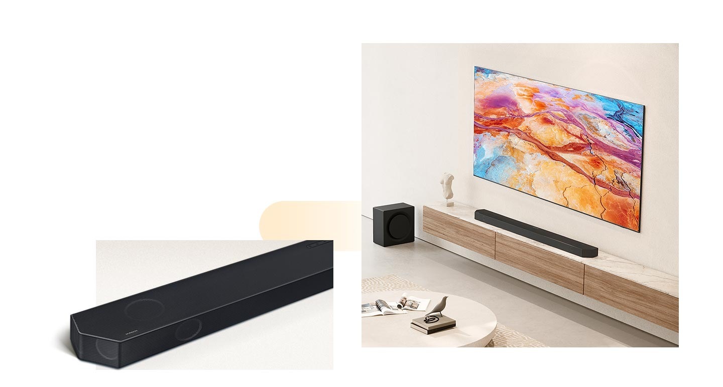 Découvrez nos barres de son ultra-fine : leur finesse impressionne et leur puissance résonne. Mesurant moins de 4cm de hauteur, la barre de son s'accorde parfaitement avec votre téléviseur et à votre intérieur. Profitez d’un son captivant et puissant grâce à la technologie Dolby Atmos sans fil et au caisson de basse sans fil inclus.