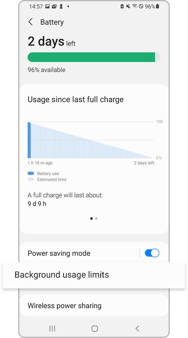 - Les applications fonctionnant en arrière-plan peuvent ne pas recevoir de mises à jour ou vous envoyer des notifications lorsque le mode économie d'énergie est activé.