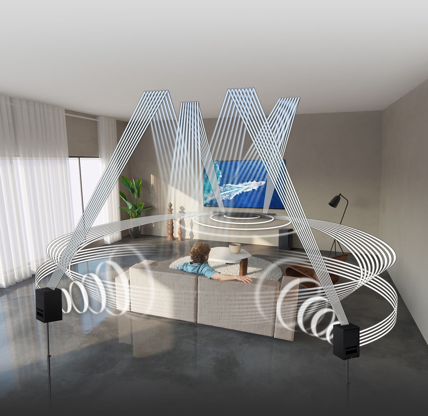 Explore a profundidade de som com as tecnologias Dolby Atmos e DTS:X. Ambas permitem-lhe ouvir cada som distinto enquanto flui à sua volta e por cima de si, exactamente como faria na vida real.
