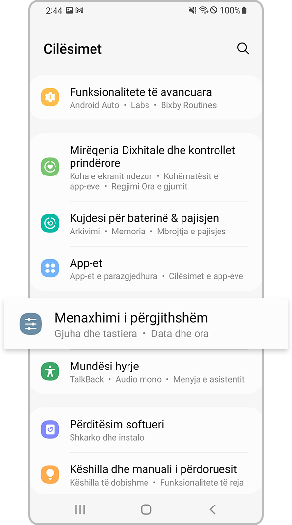 Shënim: Pamjet e ekranit dhe menytë e pajisjes mund të ndryshojnë në varësi të modelit të pajisjes dhe të versionit të softuerit.