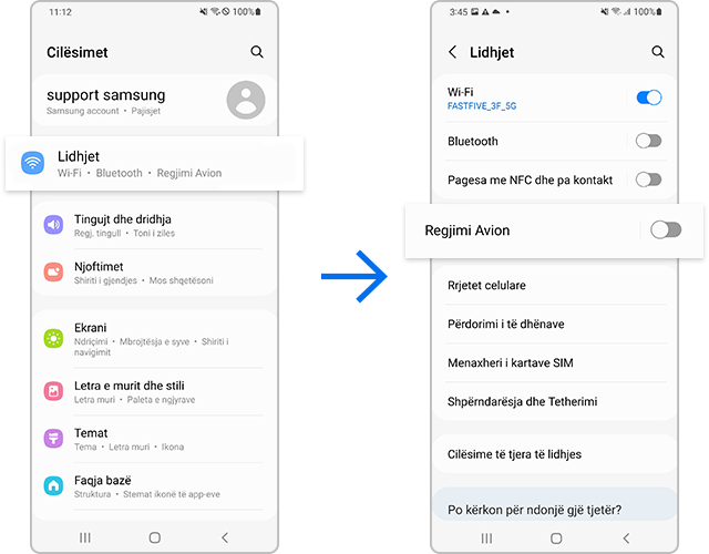 Hapi 2. Nëse është i aktivizuar Regjimi Avion, çaktivizojeni dhe kontrolloni nëse është stabilizuar lidhja.