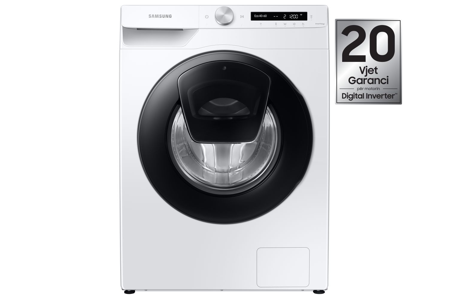 * Në përgjithësi, niveli i reduktimit të zhurmës për ciklin e larjes dhe të centrifugimit është përkatësisht 5 dBA dhe 3 dBA. Të dhënat bazohen në etiketën ERP, F500 8 kg 1400 rpm WF80F5E5P4W me motor me inverter dixhital dhe Vistula 8 kg 1400 rpm WF1804WPC me motor universal. ** Vlerësuar me një certifikim qëndrueshmërie 23-vjeçare nga Shoqata për Teknologjitë Elektrike, Elektronike dhe Informacionit në Gjermani (Verband Deutscher Elektrotechniker – VDE). Jetëgjatësia aktuale mund të ndryshojë sipas kushteve të përdorimit. *** Që nga maji 2022. Garancia 20 vjeçare e pjesëve është e zbatueshme vetëm për motorin e inverterit.