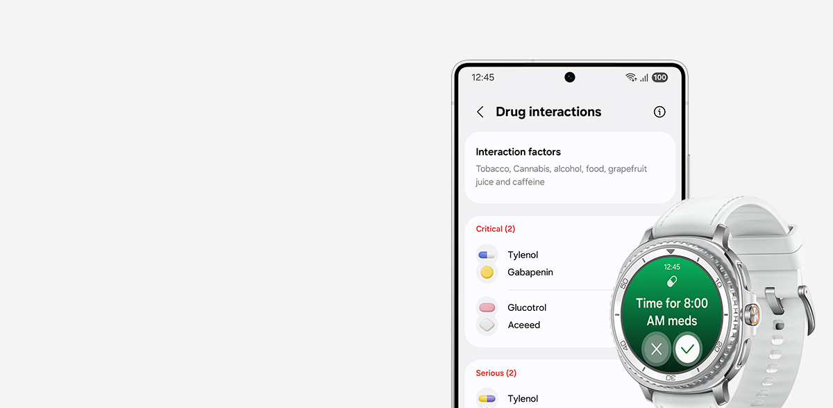 - *Image simulated. Samsung account login may be required for certain AI features. Actual UX/UI may differ.*Availability of colors, sizes, models, and watch bands may vary by country or carrier.
