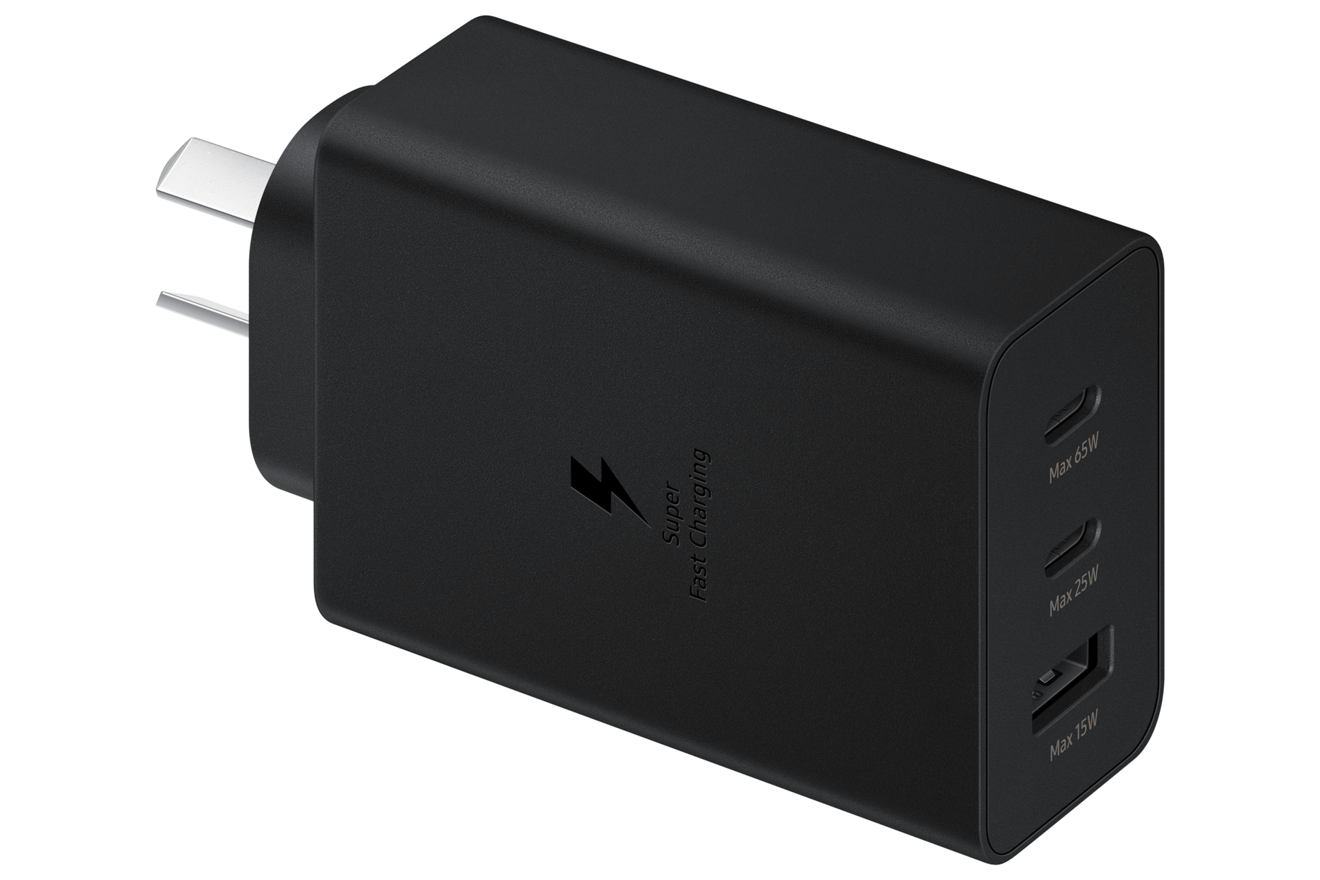 (USB-C1) Super Fast Charging 2.0 max. 45 W, PD 3.0 PDO max. 65 W, PPS max. 45 W / (USB-C2) Super Fast Charging max. 25 W, PD 3.0 PDO,PPS max. 25 W / (USB-A) AFC,QC max. 15 W / (C1+C2) 40 W + 25 W / (C1+A) 50 W + 15 W / (C2+A) 25 W + 15 W / (all) 35 W + 25 W + 5 W