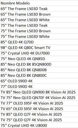 Detalle de los Productos Samsung Seleccionados que participan en la Acción: