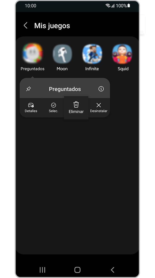 Game Launcher detecta automáticamente todos los juegos instalados en tu teléfono. Si un juego no aparece en Game Launcher, también podés agregar manualmente las aplicaciones del juego. Seguí los pasos a continuación para agregar o eliminar aplicaciones de juegos.