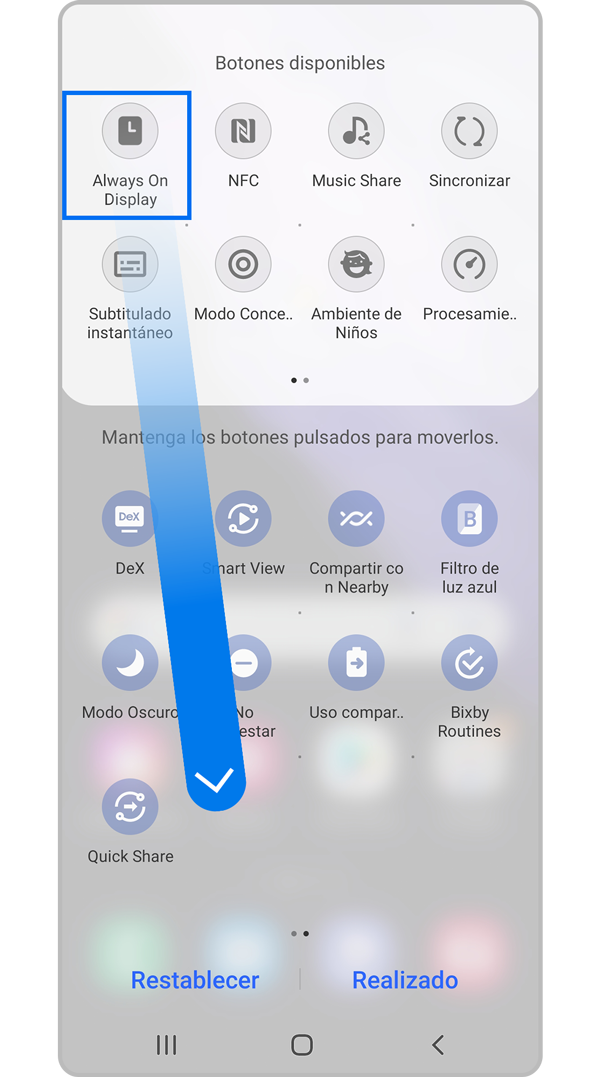- Tocá para mostrar: Always On Display aparecerá durante un breve período de tiempo después de tocar la pantalla.