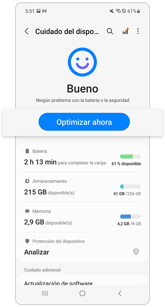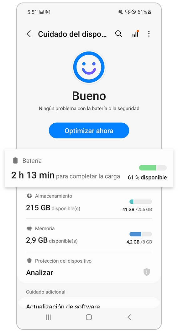 ➊ Seleccioná “Cuidado batería y dispositivo”.