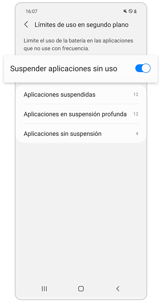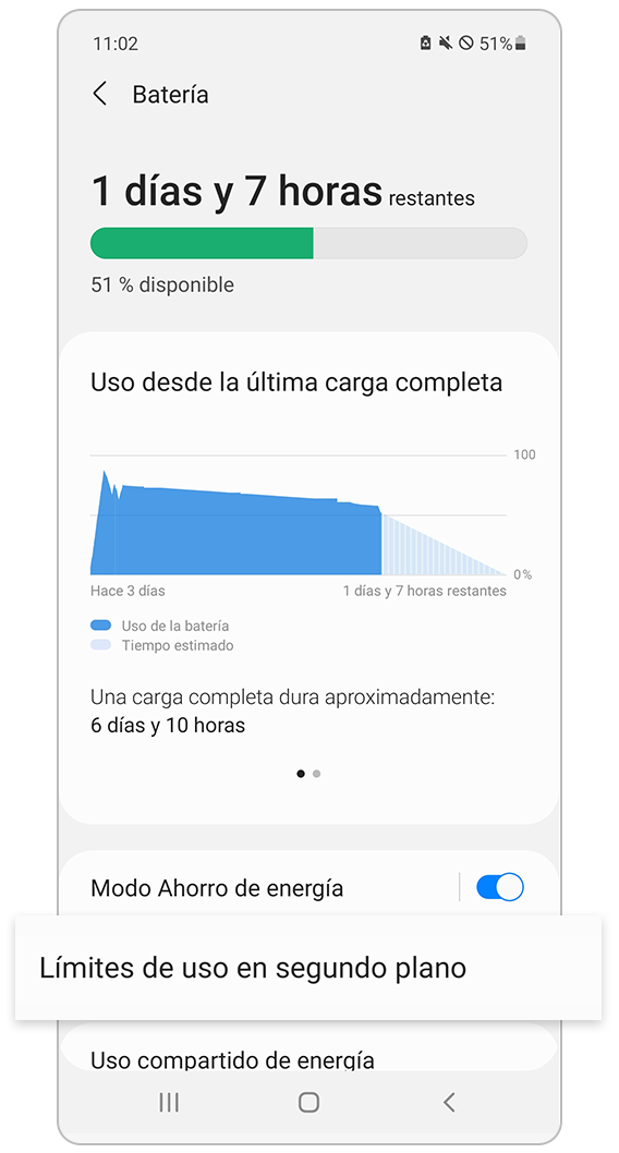 Para resolver este problema, intente “Límites de uso en segundo plano”.