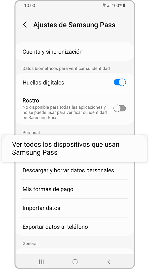 Nota: Samsung Pass solo funciona con Samsung Internet y otras aplicaciones compatibles.