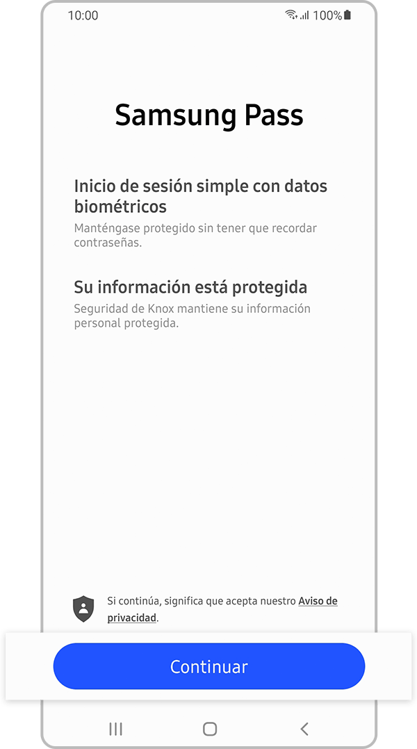 • Tenés que iniciar sesión en tu cuenta Samsung para usar Samsung Pass.