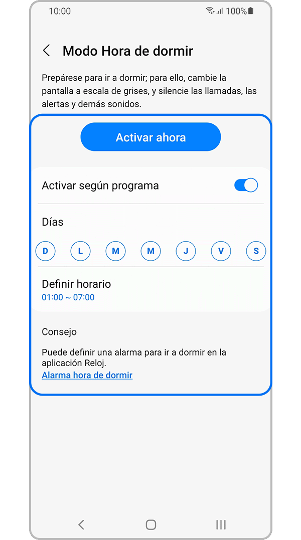 Con este modo, podrás ajustar algún horario en el que tu smartphone dejará únicamente lo más básico activo para evitar distracciones durante la noche y así puedas conciliar el sueño.