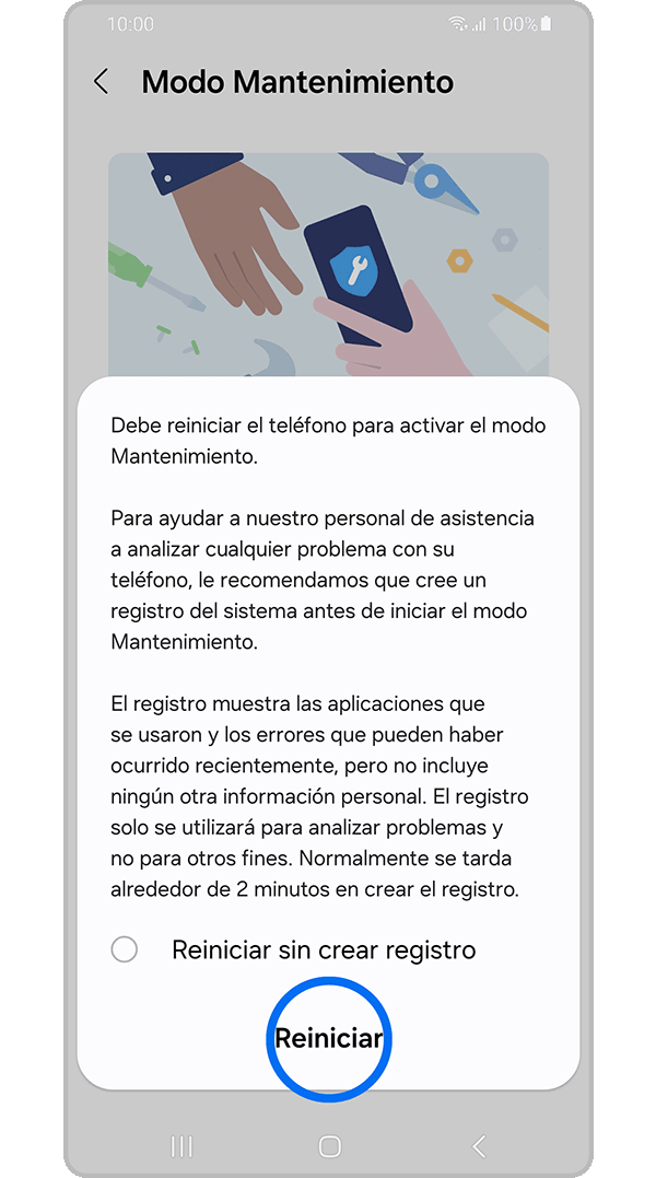 Tu dispositivo ahora se reiniciará en modo de mantenimiento.