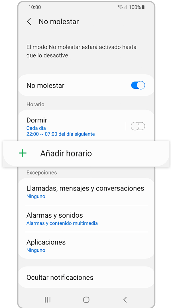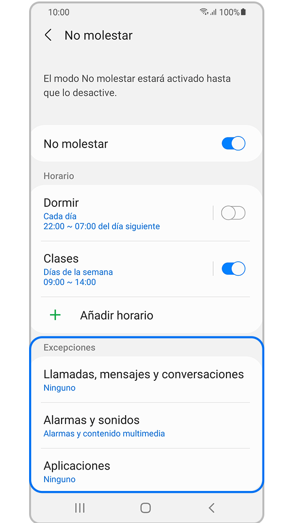Si repites este proceso, podés crear un período No molestar programado tantas veces como desees y no será molestado durante los tiempos que establezcas.