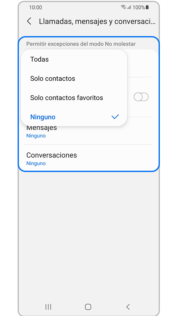 Cuando el modo No molestar está activado, es posible permitir excepciones y personalizar qué notificaciones se reciben. Seguí los pasos a continuación para configurar una excepción a No molestar.
