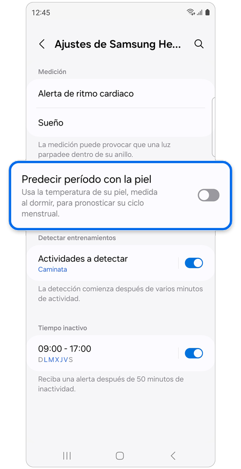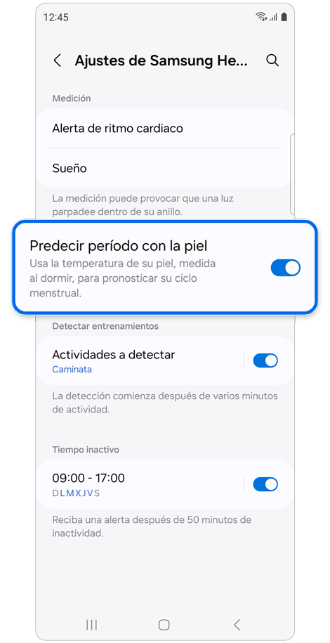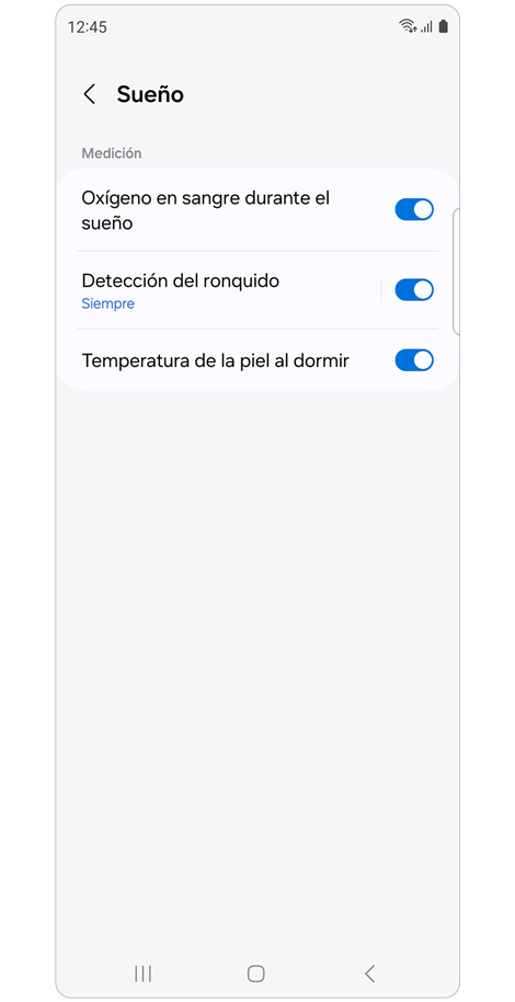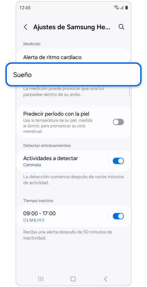 - Ajustes de medición del sueño: