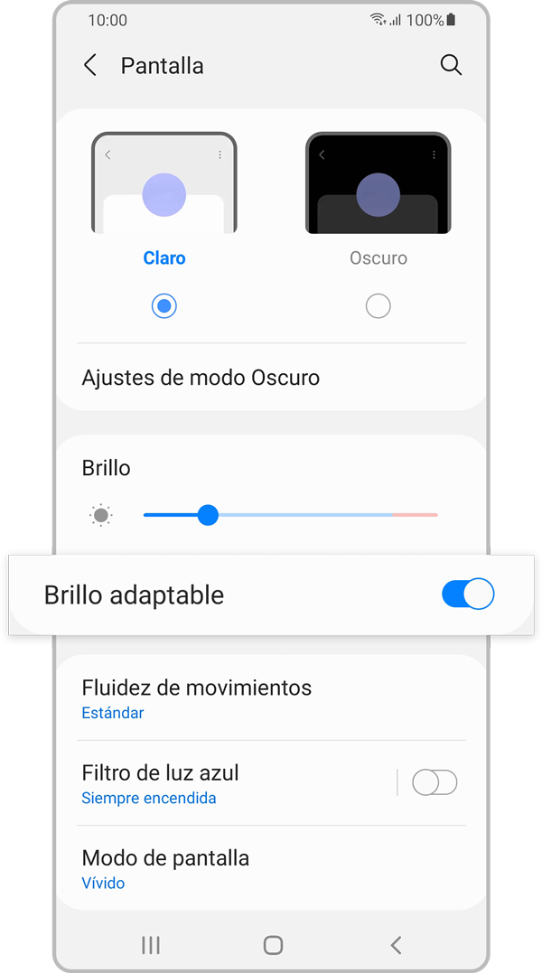 Podés reducir el consumo de batería reduciendo el brillo de la pantalla. Seguí los pasos a continuación para ajustar el brillo de la pantalla.