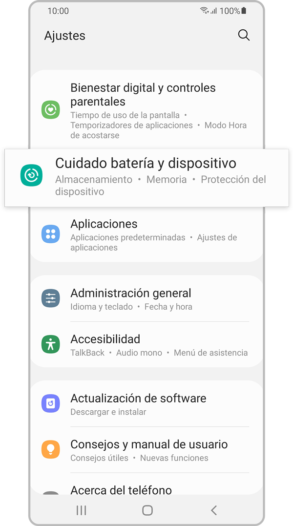 Paso 1. Iniciá la aplicación Ajustes y luego seleccioná Cuidado de la batería y el dispositivo.